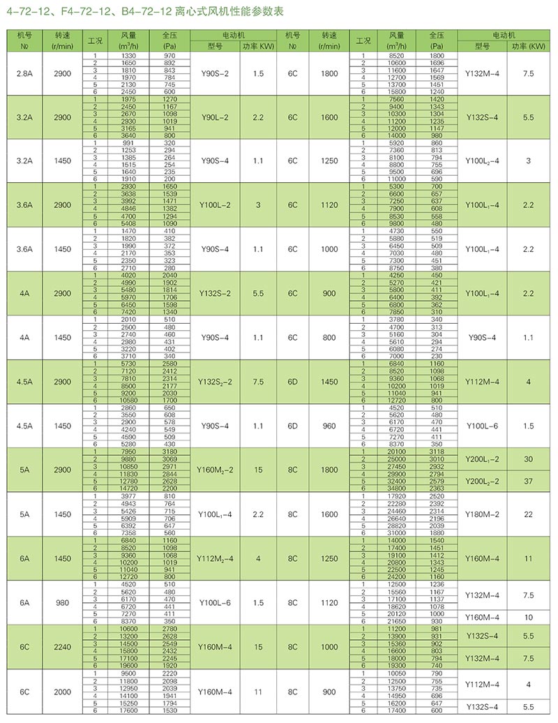 離心風(fēng)機(jī)性能特點(diǎn):離心風(fēng)機(jī)實質(zhì)是一種變流量恒壓裝置。當(dāng)轉(zhuǎn)速一定時,離心風(fēng)機(jī)的壓力-流量理論曲線應(yīng)是一條直線.由于內(nèi)部損失,實際特性曲線是彎曲的。離心風(fēng)機(jī)中所產(chǎn)生的壓力受到進(jìn)氣溫度或密度變化的較大影響。對一個給定的進(jìn)氣量,進(jìn)氣溫度(空氣密度)時產(chǎn)生的壓力.對于一條給定的壓力與流量特性曲線,就有一條功率與流量特性曲線.當(dāng)鼓風(fēng)機(jī)以恒速運(yùn)行時,對于一個給定的流量,所需的功率隨進(jìn)氣溫度的降低而升高。